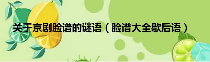 大家好,小霞來為大家解答以上的問題。關于京劇臉譜的謎語,臉譜大全歇后語這個很多人還不知道,現在讓我們一起來看看吧!