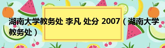 湖南大學教務處 李凡 處分 2007(湖南大學教務處)