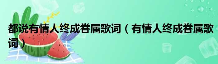 都說有情人終成眷屬歌詞(有情人終成眷屬歌詞)