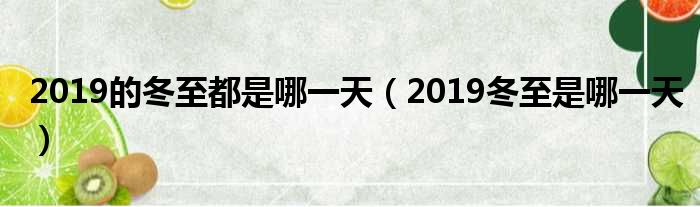 2019的冬至都是哪一天(2019冬至是哪一天)