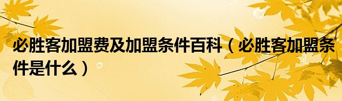 必勝客加盟費及加盟條件百科(必勝客加盟條件是什么)