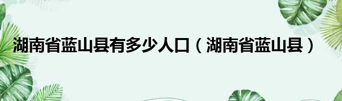 湖南省藍山縣有多少人口(湖南省藍山縣)