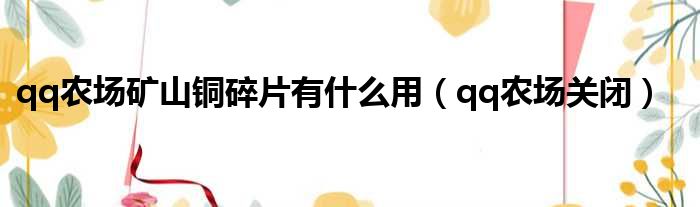 qq農場礦山銅碎片有什么用(qq農場關閉)