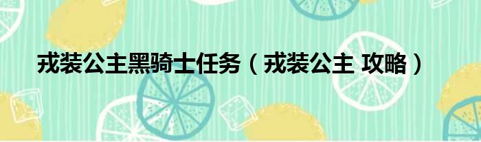 戎裝公主黑騎士任務(戎裝公主 攻略)