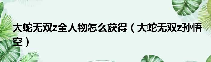 大蛇無雙z全人物怎么獲得(大蛇無雙z孫悟空)