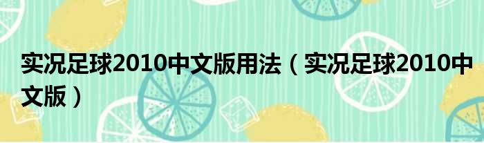 大家好,小霞來為大家解答以上的問題。實況足球2010中文版用法,實況足球2010中文版這個很多人還不知道,現在讓我們一起來看看吧!
