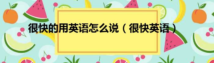 大家好,小霞來為大家解答以上的問題。很快的用英語怎么說,很快英語這個很多人還不知道,現在讓我們一起來看看吧!