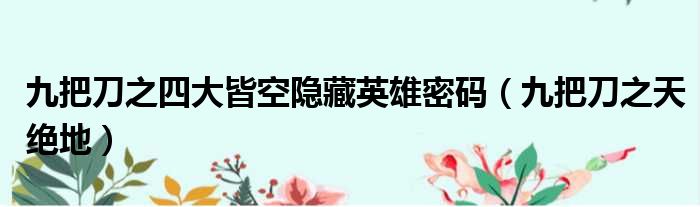 大家好,小霞來為大家解答以上的問題。九把刀之四大皆空隱藏英雄密碼,九把刀之天絕地這個很多人還不知道,現在讓我們一起來看看吧!