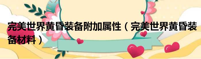 完美世界黃昏裝備附加屬性(完美世界黃昏裝備材料)