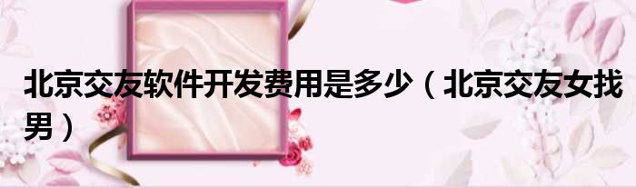 大家好,小霞來為大家解答以上的問題。北京交友軟件開發費用是多少,北京交友女找男這個很多人還不知道,現在讓我們一起來看看吧!