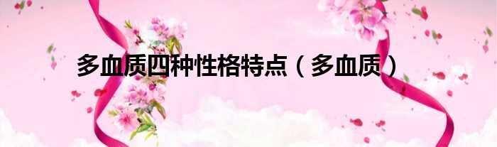 導讀 大家好,小霞來為大家解答以上的問題。多血質四種性格特點,多血質這個很多人還不知道,現在讓我們一起來看看吧!1、多血質是人的氣質類型之