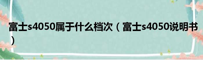 大家好,小霞來為大家解答以上的問題。富士s4050屬于什么檔次,富士s4050說明書這個很多人還不知道,現在讓我們一起來看看吧!