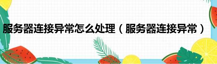 服務器連接異常怎么處理(服務器連接異常)