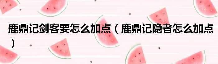 鹿鼎記劍客要怎么加點(鹿鼎記隱者怎么加點)