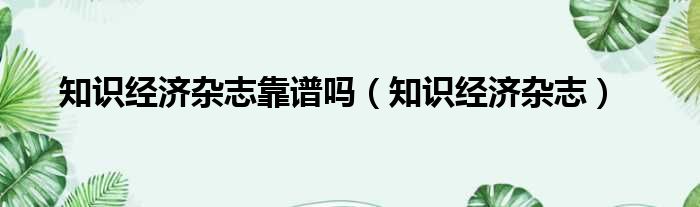 知識經濟雜志靠譜嗎(知識經濟雜志)