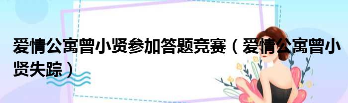 愛情公寓曾小賢參加答題競賽(愛情公寓曾小賢失蹤)