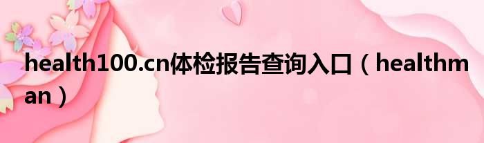大家好,小霞來為大家解答以上的問題。health100.cn體檢報告查詢入口,healthman這個很多人還不知道,現在讓我們一起來看看吧!