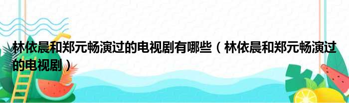 林依晨和鄭元暢演過的電視劇有哪些(林依晨和鄭元暢演過的電視劇)