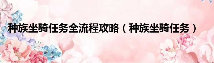 種族坐騎任務全流程攻略(種族坐騎任務)