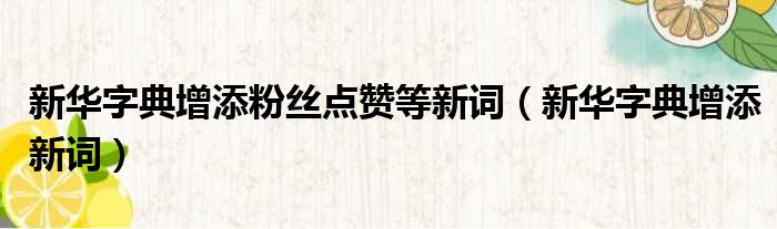 新華字典增添粉絲點贊等新詞(新華字典增添新詞)