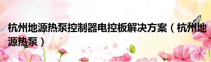 杭州地源熱泵控制器電控板解決方案(杭州地源熱泵)