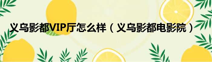 義烏影都VIP廳怎么樣(義烏影都電影院)