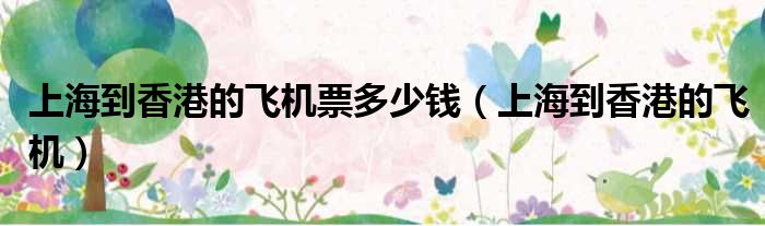 上海到香港的飛機票多少錢(上海到香港的飛機)