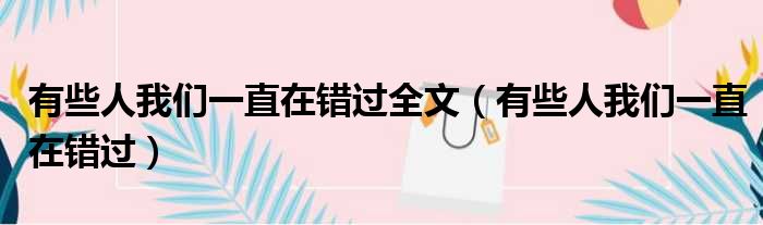 有些人我們一直在錯過全文(有些人我們一直在錯過)