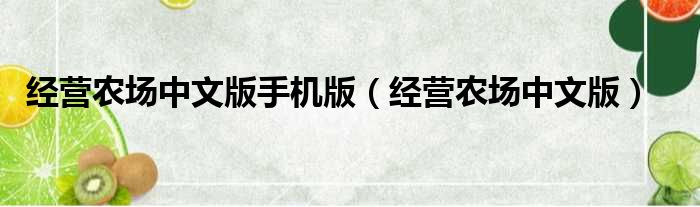大家好,小霞來為大家解答以上的問題。經營農場中文版手機版,經營農場中文版這個很多人還不知道,現在讓我們一起來看看吧!