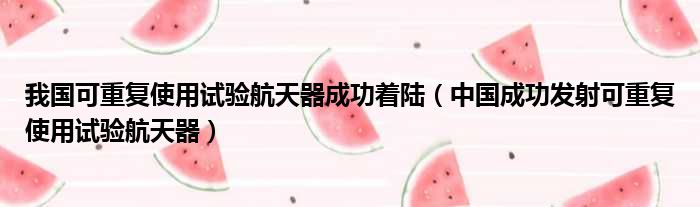 我國可重復使用試驗航天器成功著陸(中國成功發射可重復使用試驗航天器)