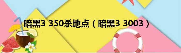 暗黑3 350殺地點(暗黑3 3003)
