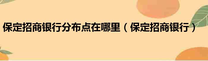 導讀 大家好,小霞來為大家解答以上的問題。保定招商銀行分布點在哪里,保定招商銀行這個很多人還不知道,現在讓我們一起來看看吧!1、一、河北保