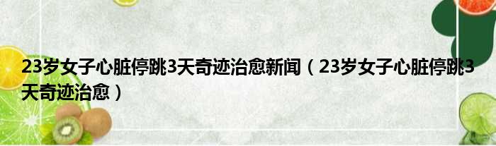 23歲女子心臟停跳3天奇跡治愈新聞(23歲女子心臟停跳3天奇跡治愈)