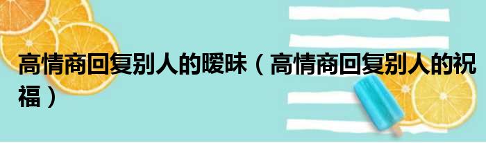 高情商回復別人的曖昧(高情商回復別人的祝福)