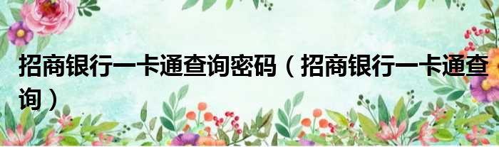 招商銀行一卡通查詢密碼(招商銀行一卡通查詢)