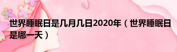 世界睡眠日是幾月幾日2020年(世界睡眠日是哪一天)