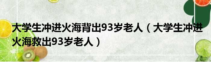 大學生沖進火海背出93歲老人(大學生沖進火海救出93歲老人)