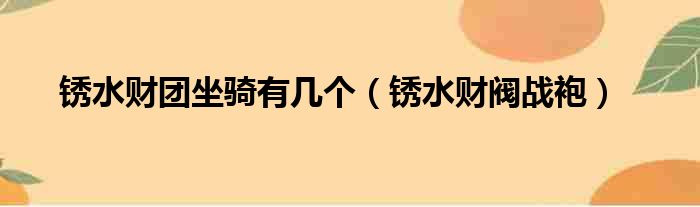 銹水財團坐騎有幾個(銹水財閥戰袍)