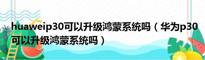 huaweip30可以升級鴻蒙系統嗎(華為p30可以升級鴻蒙系統嗎)