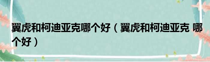 翼虎和柯迪亞克哪個好(翼虎和柯迪亞克 哪個好)