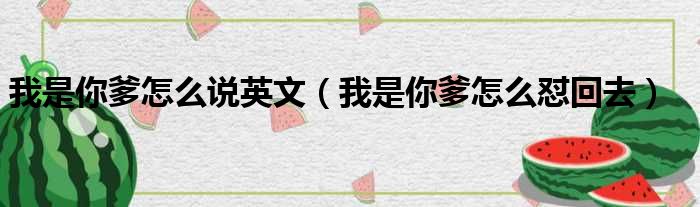 大家好,小霞來為大家解答以上的問題。我是你爹怎么說英文,我是你爹怎么懟回去這個很多人還不知道,現在讓我們一起來看看吧!