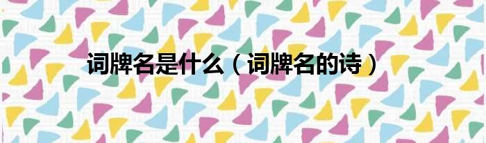 大家好,小霞來為大家解答以上的問題。詞牌名是什么,詞牌名的詩這個很多人還不知道,現在讓我們一起來看看吧!