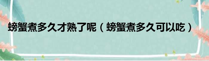大家好,小霞來為大家解答以上的問題。螃蟹煮多久才熟了呢,螃蟹煮多久可以吃這個很多人還不知道,現在讓我們一起來看看吧!