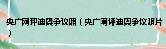 央廣網評迪奧爭議照(央廣網評迪奧爭議照片)