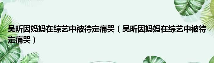 大家好,小霞來為大家解答以上的問題。吳昕因媽媽在綜藝中被待定痛哭,吳昕因媽媽在綜藝中被待定痛哭這個很多人還不知道,現在讓我們一起來看看吧!