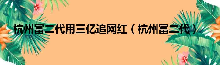 杭州富二代用三億追網紅(杭州富二代)