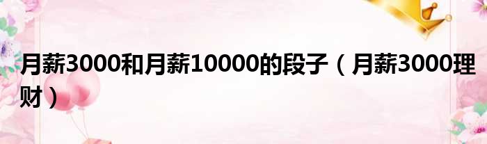 大家好,小霞來為大家解答以上的問題。月薪3000和月薪10000的段子,月薪3000理財這個很多人還不知道,現在讓我們一起來看看吧!