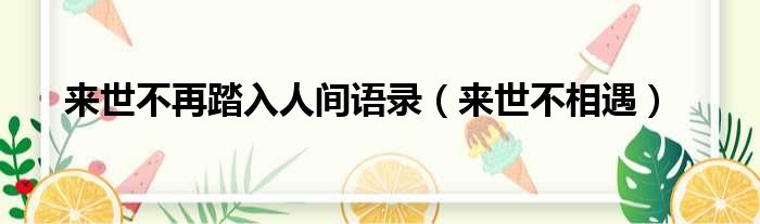 大家好,小霞來為大家解答以上的問題。來世不再踏入人間語錄,來世不相遇這個很多人還不知道,現在讓我們一起來看看吧!