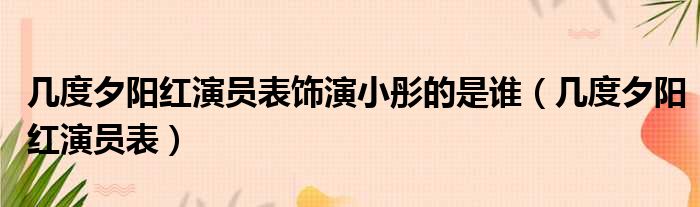導讀 大家好,小霞來為大家解答以上的問題。幾度夕陽紅演員表飾演小彤的是誰,幾度夕陽紅演員表這個很多人還不知道,現在讓我們一起來看看吧!1、