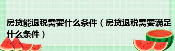 房貸能退稅需要什么條件(房貸退稅需要滿足什么條件)